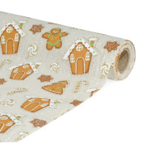 Frunner decorativ de masă – 180 x 28 cm – 70% poliester, 30% bumbac – model Moș Crăciun, maro