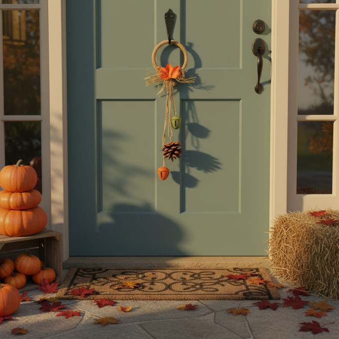 Îmbogățește-ți locuința cu această coroniță de toamnă, creată pentru a aduce căldura și frumusețea sezonului chiar la intrare. Realizată pe o bază naturală, decorațiunea îmbină armonios frunze colorate, conuri de brad, clopoței și fundiță decorativă, oferind un aspect plin de viață și primitor. Poate fi agățată cu ușurință pe uși, pereți sau ferestre, fiind un accesoriu ideal pentru a completa atmosfera de toamnă din orice spațiu.