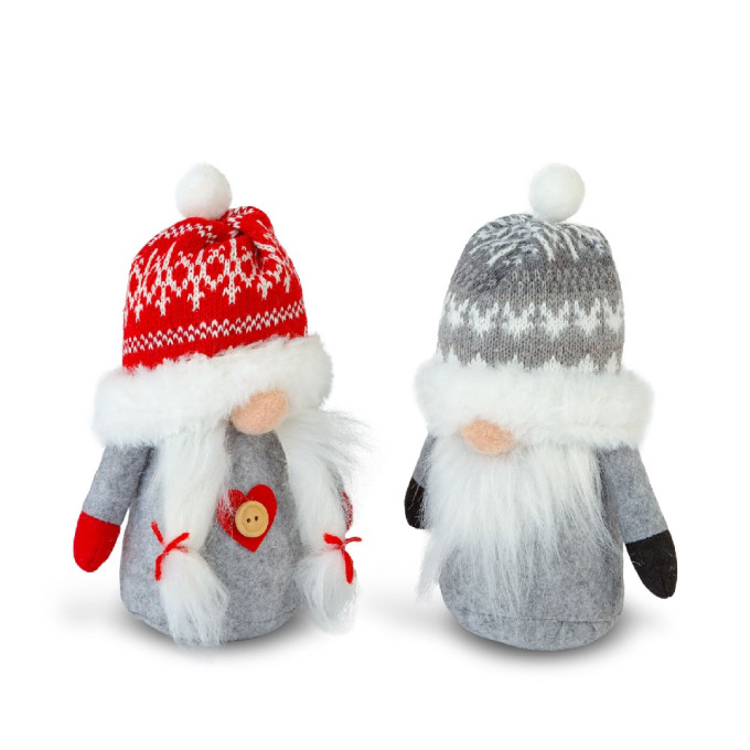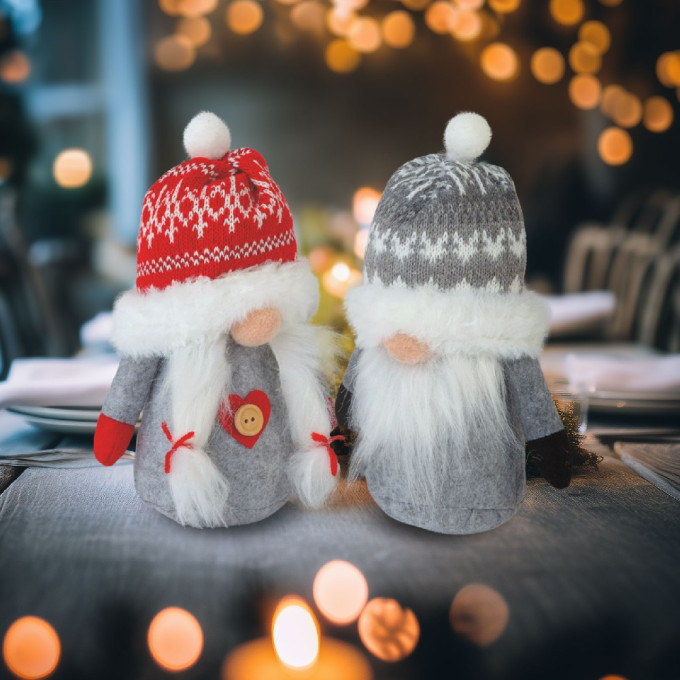 Adaugă un strop de veselie sărbătorilor cu acești spiriduși scandinavi decorativi. Realizați din material textil moale și plăcut la atingere, aceștia au barbă stufoasă, păr lung și pălării festive în roșu și gri, fiind ideali pentru a completa atmosfera de Crăciun.