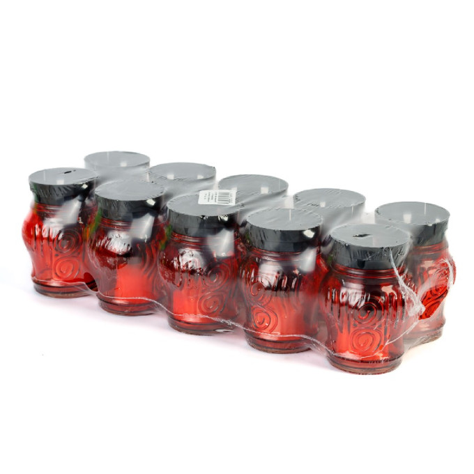 Această lumânare clasică din sticlă roșie este ideală pentru comemorări, sărbători sau vizite la cimitir. Recipientul din sticlă colorată în roșu oferă un aspect elegant și tradițional, iar capacul din plastic negru protejează flacăra de vânt și contribuie la o ardere sigură.