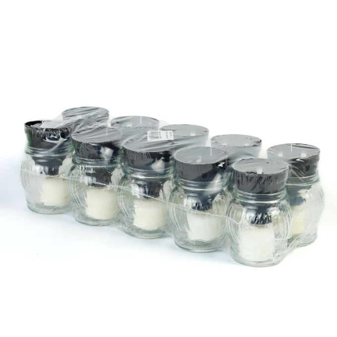 Această lumânare clasică din sticlă albă este o alegere potrivită pentru comemorări, sărbători sau vizite la cimitir. Recipientul din sticlă transparentă cu aspect alb oferă o notă elegantă și sobruă, iar capacul negru din plastic protejează flacăra și îi prelungește arderea.