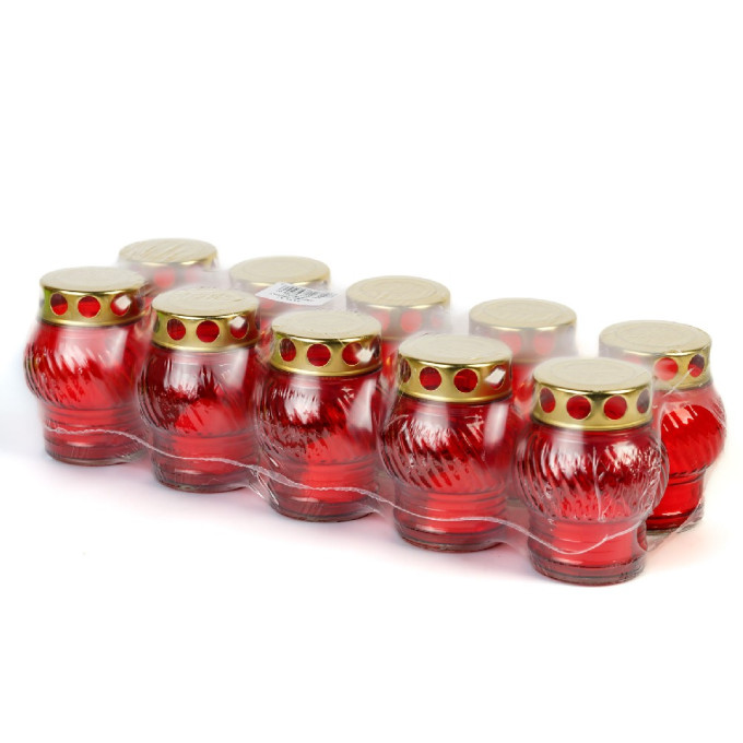 Această lumânare clasică din sticlă roșie este un simbol al reculegerii și respectului, potrivită pentru comemorări, sărbători religioase sau vizite la cimitir. Recipientul din sticlă oferă un aspect elegant și tradițional, iar capacul metalic auriu protejează flacăra și o face mai rezistentă la vânt.