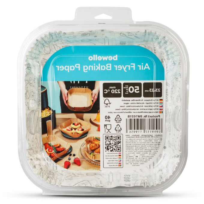 Această hârtie de coacere special concepută pentru air fryer, cu dimensiunile de 23 x 26 cm și formă pătrată cu model, oferă o soluție practică pentru gătit. Fabricată din hârtie de 40 gsm, rezistentă la temperaturi de până la 220°C, previne lipirea și arderea alimentelor de coșul de gătit, păstrând gustul intact și reducând pierderile de mâncare. Este ideală pentru utilizare în air fryer, cuptor electric, microunde sau aparate de gătit cu aburi, fiind de unică folosință și livrată în pachete de 50 de bucăți. De asemenea, facilitează curățarea coșului, prelungindu-i durata de viață.