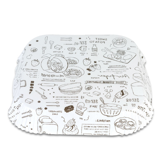 Hârtie de Coacere pentru Air Fryer - Cu Model, Pătrată, 23 x 26 cm - 50 Bucăți/Pachet