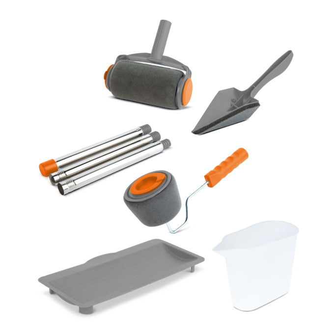| Conținut set | Rolă vopsit, rolă îngustă, unelte colț, tavă scurgere, vas măsurare, tijă vopsit |