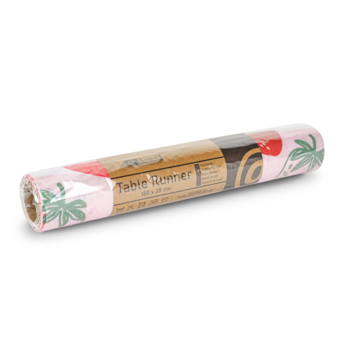Traversă de masă decorativă – 180 x 28 cm – 70% poliester, 30% bumbac – model căpșuni