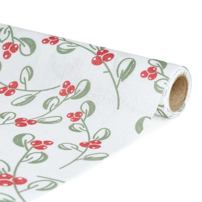 Această traversă de masă decorativă adaugă o notă de eleganță și rafinament oricărui spațiu. Cu un design inspirat din natură, modelul cu vâsc pe fundal alb aduce un aer cald și plăcut, potrivit pentru decoruri sezoniere sau pentru mesele speciale din familie.