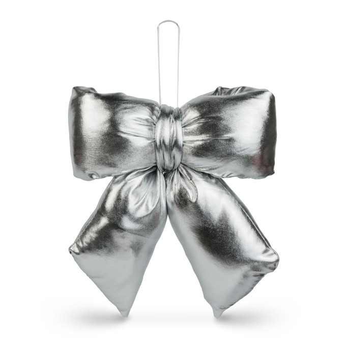 Adaugă o notă de rafinament și strălucire oricărui decor cu această fundă decorativă argintie, elegantă și versatilă. Ideală pentru împodobirea spațiilor interioare, a bradului, a coronițelor sau a cadourilor mari, funda este accesoriul perfect pentru a oferi un aspect festiv și sofisticat.