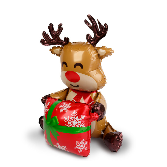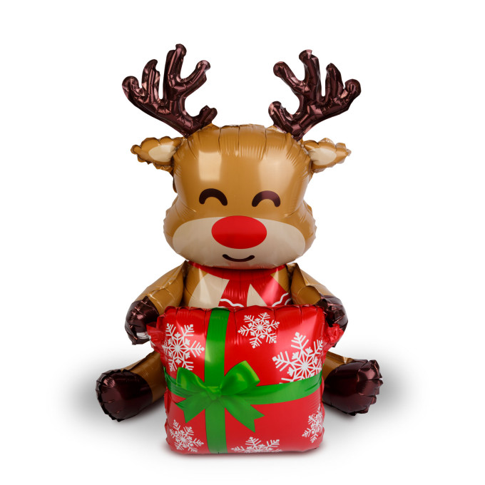 Balonul este confecționat din folie rezistentă, de înaltă calitate, și se umflă cu aer (nu este compatibil cu heliu). Datorită materialului durabil, își păstrează forma și culorile strălucitoare pentru o perioadă îndelungată. Designul jucăuș, cu renul care poartă cadouri, aduce un plus de energie și bună dispoziție oricărui spațiu.