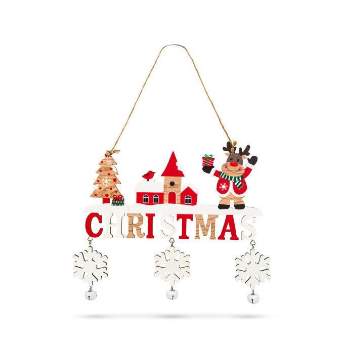 Fabricată din MDF rezistent, decorațiunea are un aspect natural și plăcut, completat de trei clopoței mici care produc un sunet discret și plăcut la atingere. Poate fi agățată cu ușurință pe ușă, fereastră, perete sau chiar pe brad, datorită șnurului rezistent din iută.