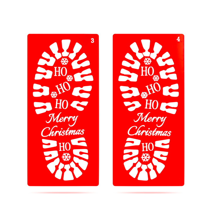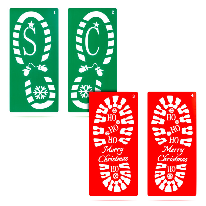 Setul conține 4 șabloane diferite, fiecare decorat cu motive festive și mesaje precum „Merry Christmas” sau „HO-HO-HO”. Confecționate din plastic flexibil, rezistent și ușor de curățat, șabloanele pot fi reutilizate an de an. Se pot folosi cu zăpadă artificială, vopsea sau praf decorativ pentru un efect realist și spectaculos.
