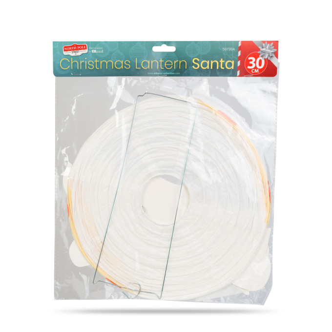 Adaugă veselie și culoare decorului tău de iarnă cu acest lampion decorativ din hârtie, ilustrat cu un chip zâmbitor de Moș. Cu un diametru de 30 cm, lampionul este ideal pentru a crea o atmosferă caldă și festivă în living, dormitor sau birou.