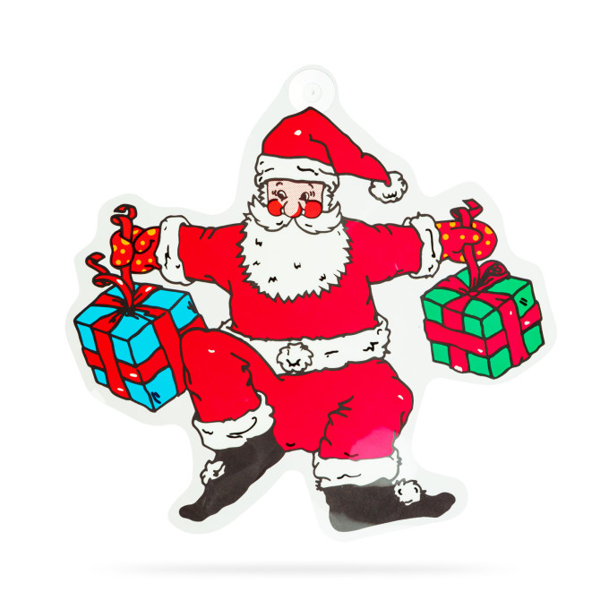 Oferă locuinței tale un aer vesel și colorat cu această decorațiune de fereastră în formă de Moș! Realizată din PVC rezistent, piesa este prevăzută cu un sistem de prindere pe ventuză, care permite fixarea rapidă pe suprafețe netede – geamuri, oglinzi, uși sau mobilier lucios – fără a lăsa urme.