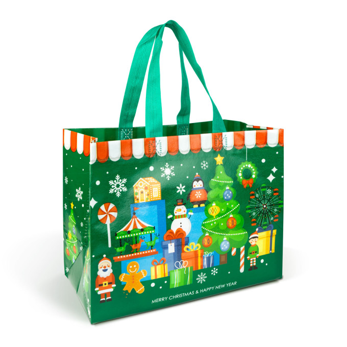 Materialul durabil și mânerele late asigură o utilizare confortabilă și sigură, în timp ce designul colorat aduce un plus de farmec oricărui cadou. Este perfectă pentru daruri, dulciuri sau obiecte decorative, fiind potrivită pentru orice ocazie de iarnă.