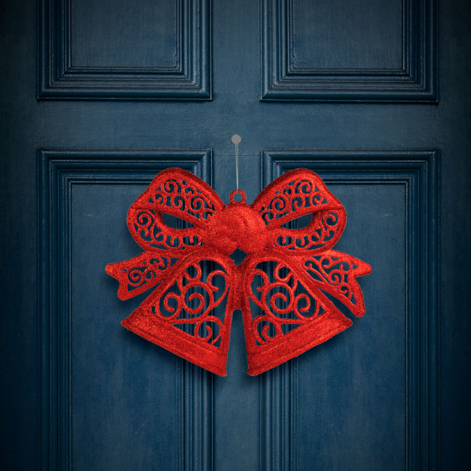Adaugă o notă elegantă și strălucitoare decorului tău de sărbătoare cu această fundă decorativă de mari dimensiuni. Realizată din material plastic rezistent, cu finisaj glitter roșu intens, fundița este ideală pentru împodobirea bradului, a ușilor, ferestrelor sau a spațiilor comerciale.