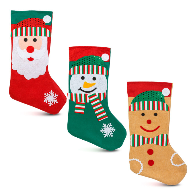 Cizmă decorativă de Crăciun – textil – 42 x 24,5 cm – 3 modele (Moș Crăciun, om de zăpadă, ren)