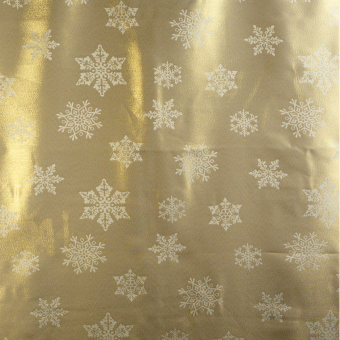 Țesătura 100% poliester oferă un aspect plăcut, moale la atingere și este ușor de întreținut, rezistentă la uzură și pete. Modelul subtil cu fulgi de nea și finisajul auriu adaugă un plus de rafinament oricărui decor de sărbătoare.