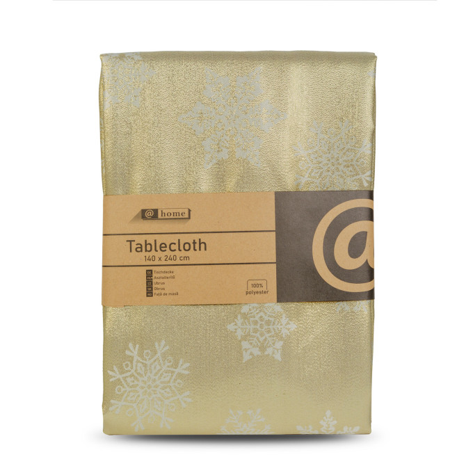 Față de masă decorativă – 140 x 240 cm – 100% poliester – model fulg de nea, culoare aurie