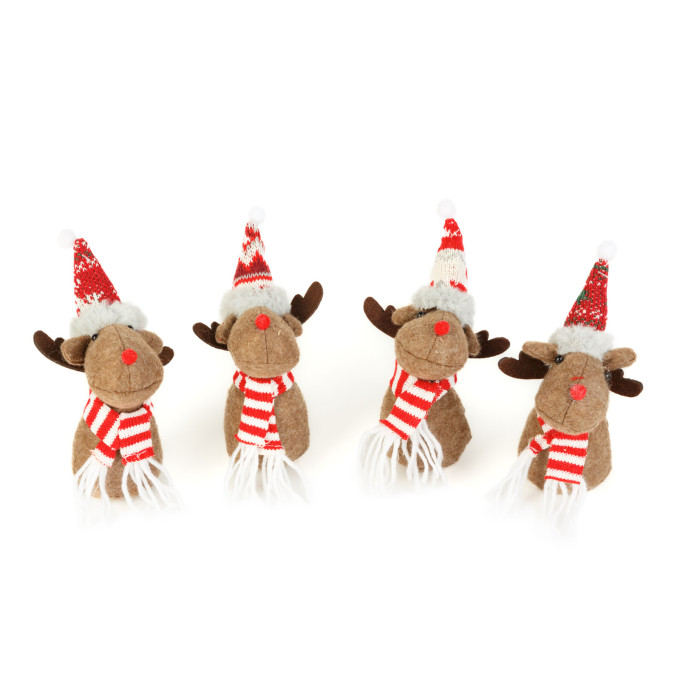 Acești reni adorabili de 18 cm îmbrăcați în stil manó skandinav sunt cele mai drăgălașe accente de Crăciun! Cu căciulițe roșii-albe-gri, urechi mari și fețe vesele, sunt realizați din material textil ultra-moale (poliester + bumbac) și umpluți cu nisip pentru stabilitate. Disponibili în 4 modele diferite – perfecte pe birou, raft, masă sau lângă brad, aduc bucurie și căldură nordică în orice casă.