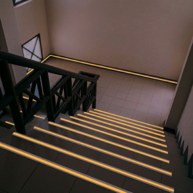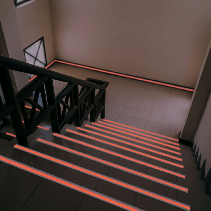 Bandă adezivă antiderapantă de calitate superioară, ideală pentru prevenirea alunecărilor și marcarea vizibilă a zonelor periculoase. Suprafața este texturată și antiderapantă, reducând riscul de accidente pe scări, rampe, coridoare, podele umede sau orice suprafață netedă. În centru are o bandă fosforescentă (după-glow) care strălucește în întuneric după expunere la lumină, oferind vizibilitate excelentă în condiții de lumină slabă. Disponibilă în 5 culori vii: verde deschis, verde, portocaliu, albastru și roz. Spatele este autoadesiv, se aplică ușor pe suprafețe curate și plane, rezistentă la apă și UV, potrivită atât pentru interior, cât și pentru exterior.