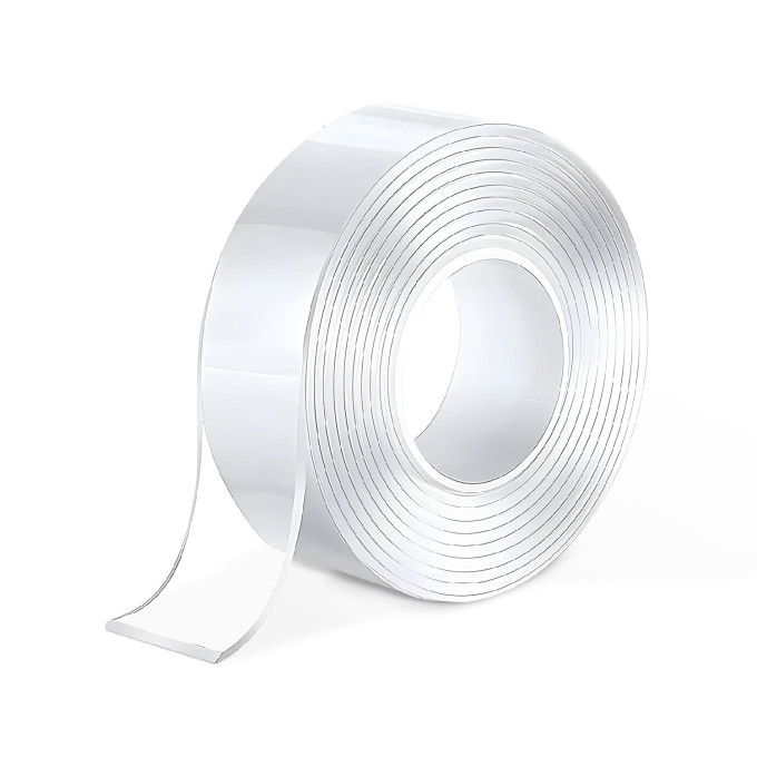 Bandă nano două fețe extra puternică, pe bază de gel nano PU, ideală pentru fixarea ușoară și discretă a obiectelor ușoare. Este complet transparentă, nu lasă urme la îndepărtare, se spală cu apă caldă și poate fi reutilizată de mai multe ori (atâta timp cât nu se lipește de ea însăși sau nu se mototolește). Oferă aderență instantanee pe suprafețe curate și uscate precum plastic, lemn, metal, sticlă sau oglindă. Perfectă pentru fixarea covoarelor, decorațiuni de perete, telefon, accesorii birou, rame foto, organizatoare sau orice aplicație casnică și de birou unde aspectul curat și reinstalarea sunt importante. Utilizare recomandată doar în interior (rezistența scade la expunere prelungită la intemperii).