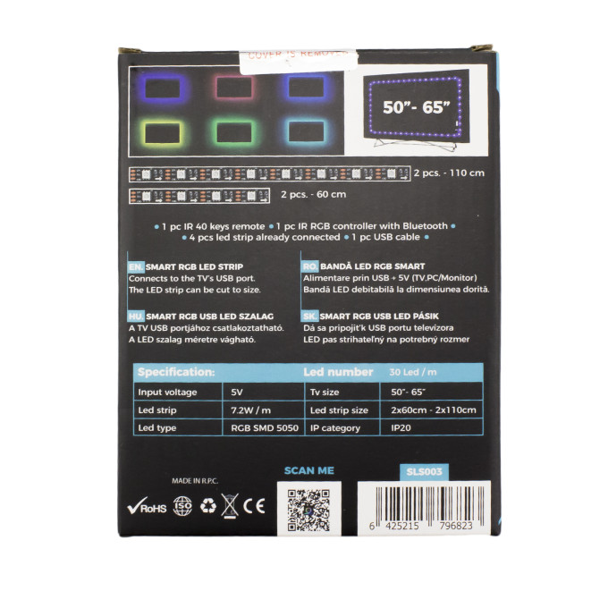 - Banda autoadezivă permite o fixare ușoară pe spatele televizorului iar lumina multicoloră RGB asigură un ambient vesel.