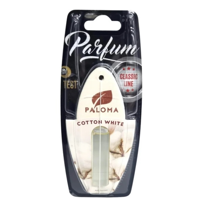 Achizitioneaza acum Odorizantul auto Paloma Parfum Cotton White si bucura-te de senzatia de curat in fiecare calatorie!